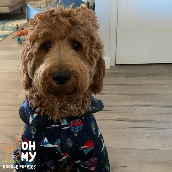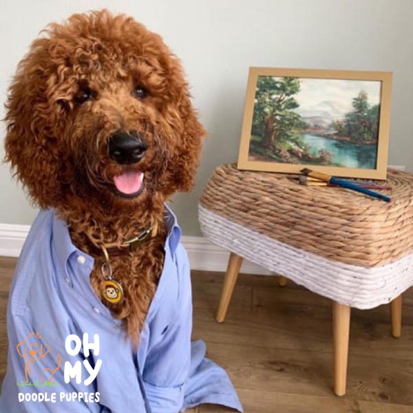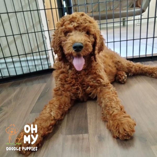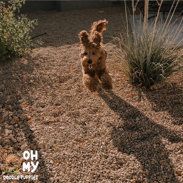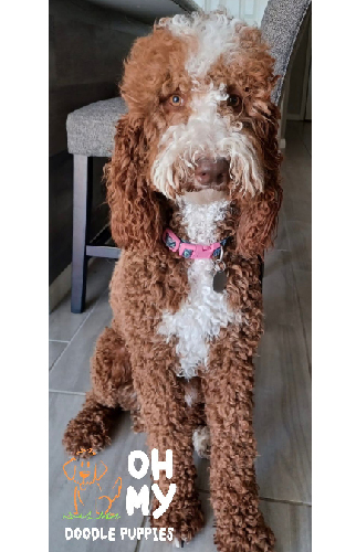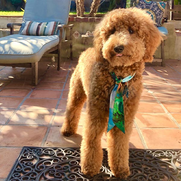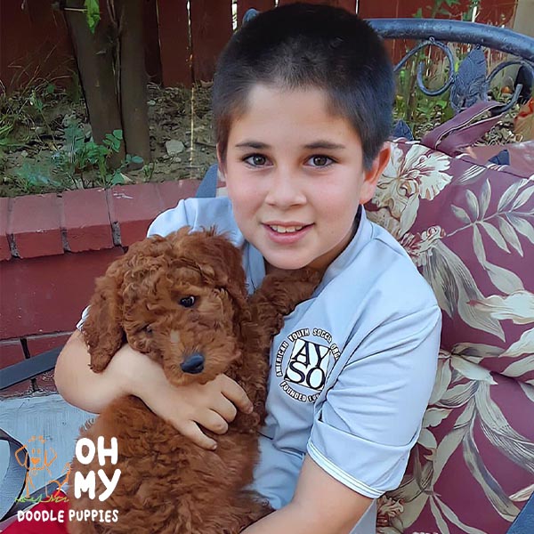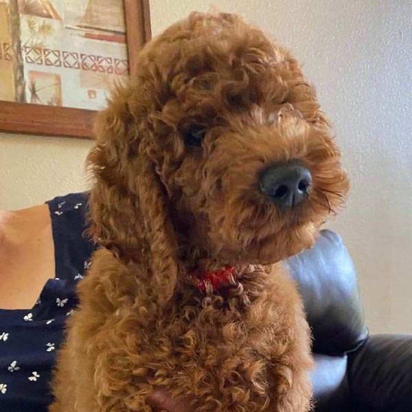 “We got our sweet girl Arya from Monica over a year ago and she has truly changed our lives. From the start, Monica was such a pleasure to work with. She responded to any and all questions we had in a timely, thorough fashion. She sent us photos and updates of shots until it was finally time to take our puppy home. Truly the most striking thing about working with Monica was her deep love and care for her puppies and dogs. When picking Arya from the litter, you could tell they were being so well cared for and could trust we were getting a healthy, well loved pup. It’s been a little over a year and Arya is extremely happy and healthy. Aside from her being incredibly smart with SO much personality, we constantly get compliments on how beautiful she is and how incredible her red coat is. We can’t wait to work with Monica again and expand our doodle family. Highly recommend this loving breeder!