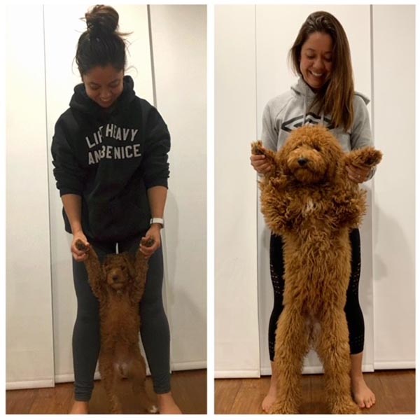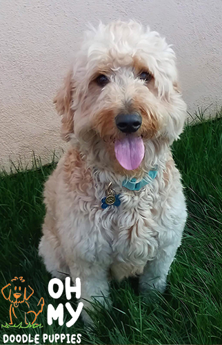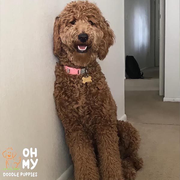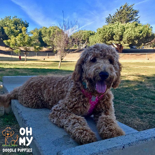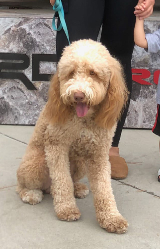 "We brought Lilo home on May 28, 2018. She was the happiest, most loving, and friendliest pup. She immediately ran over and loved on us. You could tell her previous owners loved her and took well care of her. Lilo was the runt of the litter, currently weighs in at 36 pounds. Lilo has the best health and temperament. She is overly joyed to see her friends and family, always wants to be part of the group, loves to play with dogs at the park, and absolutely loves our cats and nieces. Lilo is now 3 years old and is very easy going. She loves to go to work with me and doesn’t care whether we play or sleep all day. Lilo has been an absolute joy to our family and brings smiles to everyone’s face. I highly recommend getting your doodle here!"